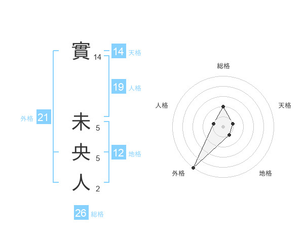 實 未央人さんの外格は21画の5点!