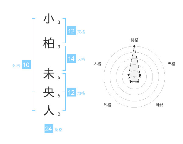 小柏 未央人さんを姓名の画数から五運を鑑定