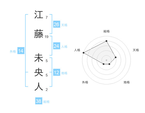 江藤 未央人さんの総格は38画の4点!