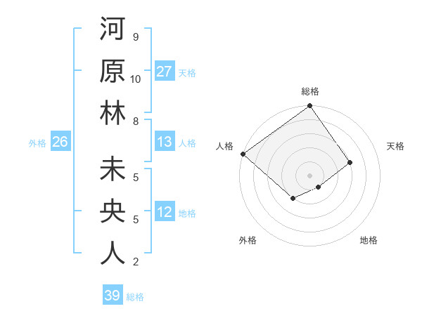 河原林 未央人さんを姓名の画数から五運を鑑定