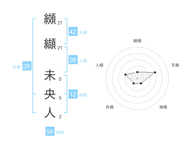 纐纈 未央人さんを姓名の画数から五運を鑑定