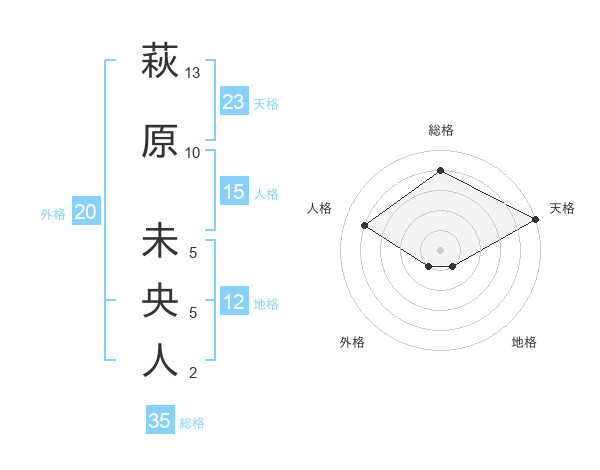萩原 未央人さんの天格は23画の5点!