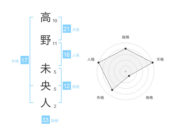 高野 未央人さんの総格は33画の4点!