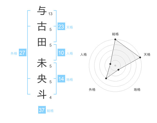 与古田 未央斗さんを姓名の画数から五運を鑑定