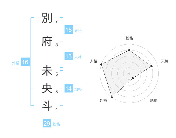 別府 未央斗さんを姓名の画数から五運を鑑定