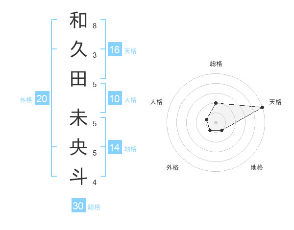 和久田 未央斗さんの天格は16画の5点!