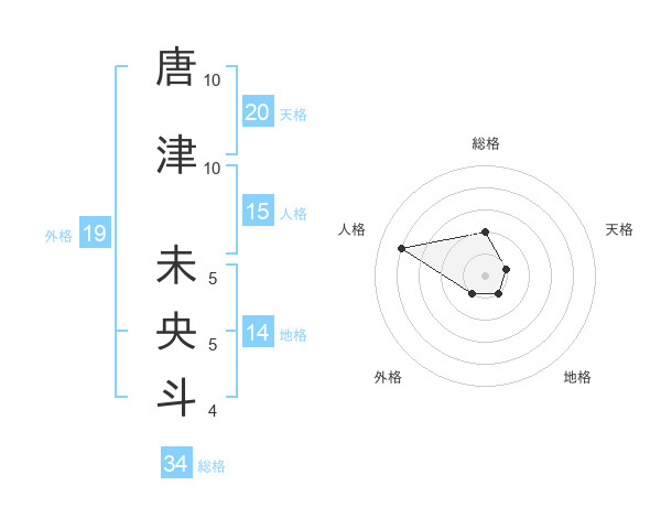 唐津 未央斗さんの総格は34画の2点!