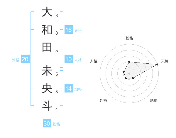 大和田 未央斗さんの総格は30画の2点