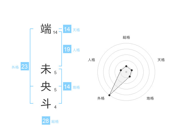 端 未央斗さんの外格は23画の5点!