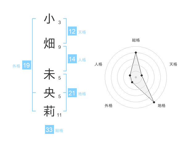 小畑 未央莉さんを姓名の画数から五運を鑑定