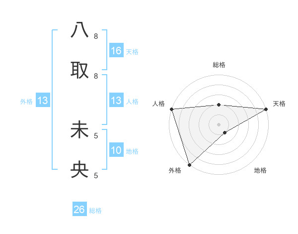 八取 未央さんの外格は13画の5点!