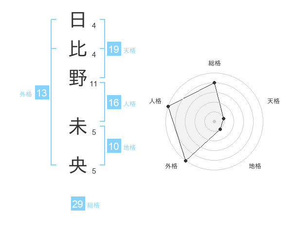 日比野 未央さんの外格は13画の5点!