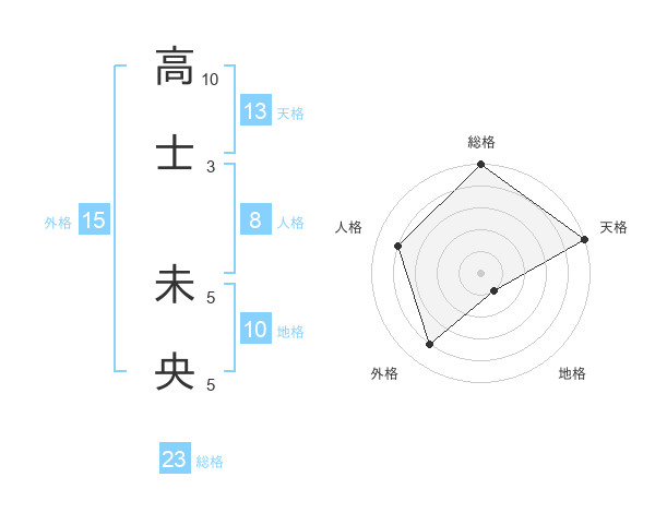 高士 未央さんの総格は23画の5点!