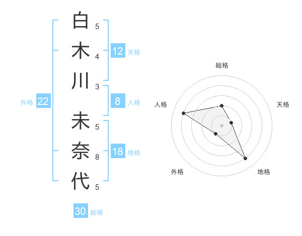 白木川 未奈代さんの総格は30画の2点!