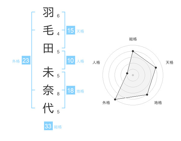 羽毛田 未奈代さんを姓名の画数から五運を鑑定