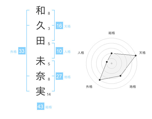 和久田 未奈実さんを姓名の画数から五運を鑑定