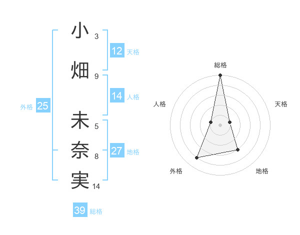 小畑 未奈実さんを姓名の画数から五運を鑑定