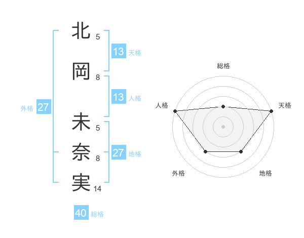 北岡 未奈実さんを姓名の画数から五運を鑑定