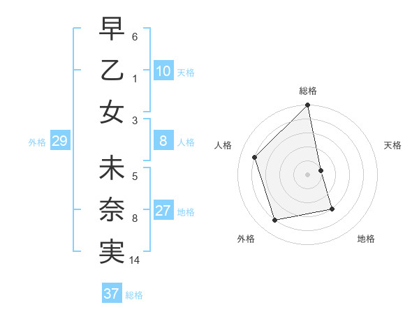 早乙女 未奈実さんを姓名の画数から五運を鑑定