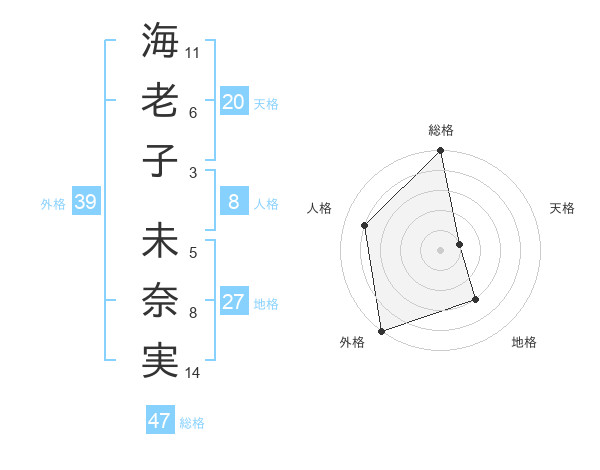 海老子 未奈実さんを姓名の画数から五運を鑑定