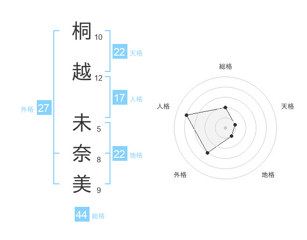 桐越 未奈美さんを姓名の画数から五運を鑑定