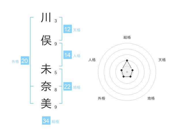 川俣 未奈美さんを姓名の画数から五運を鑑定