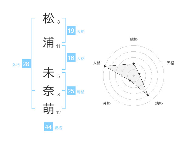 松浦 未奈萌さんを姓名の画数から五運を鑑定