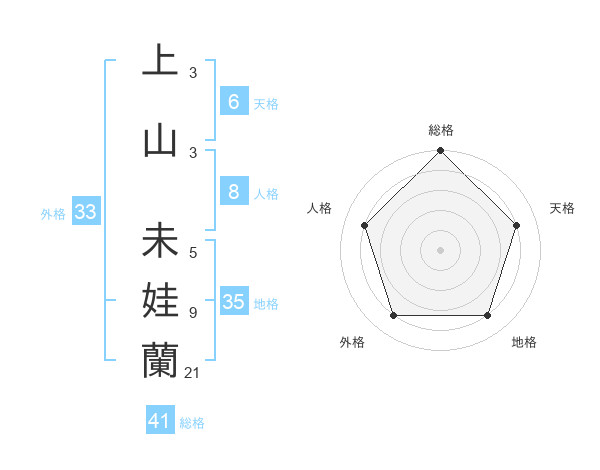 上山 未娃蘭さんを姓名の画数から五運を鑑定