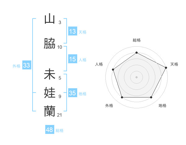 山脇 未娃蘭さんの総格は48画の4点!