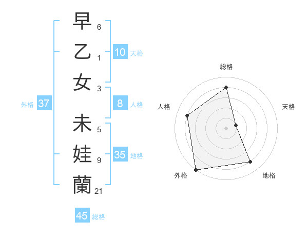 早乙女 未娃蘭さんを姓名の画数から五運を鑑定