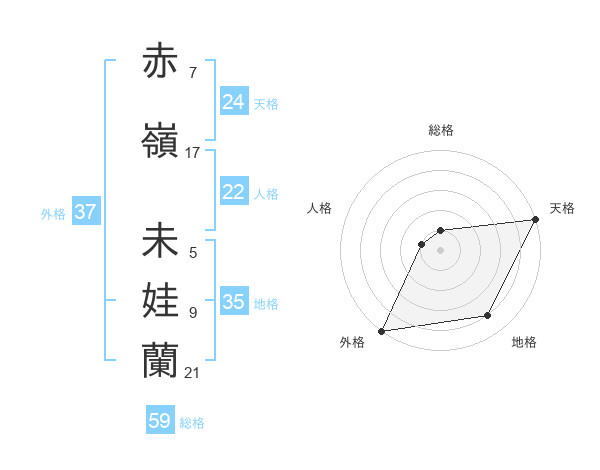 赤嶺 未娃蘭さんの外格は37画の5点!