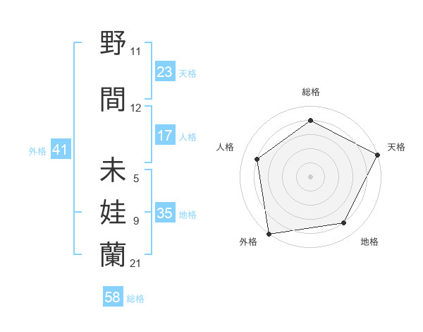 野間 未娃蘭さんの外格は41画の5点!