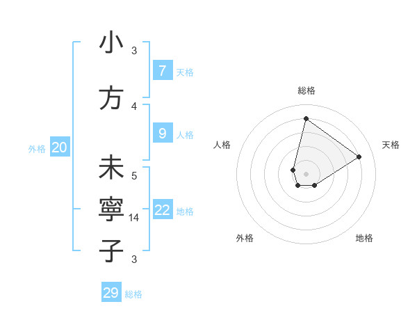 小方 未寧子さんの総格は29画の4点