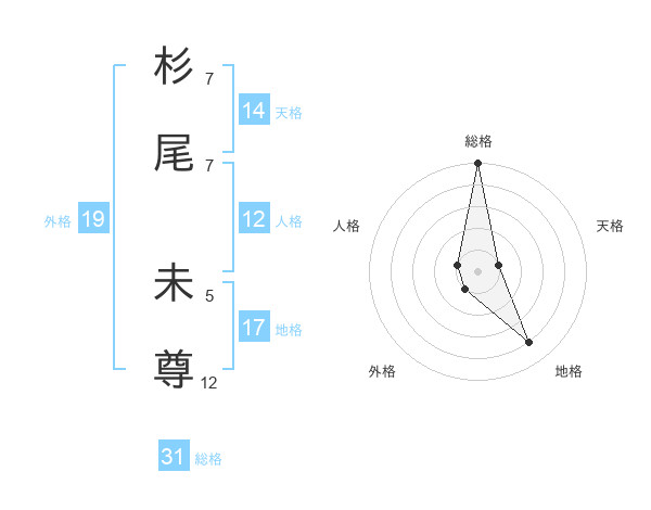 杉尾 未尊さんを姓名の画数から五運を鑑定