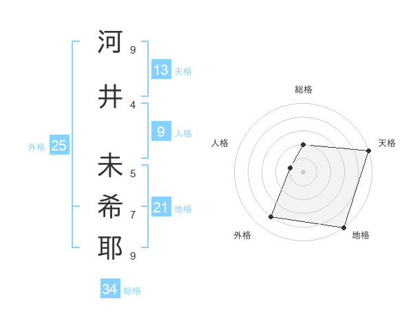 河井 未希耶さんを姓名の画数から五運を鑑定