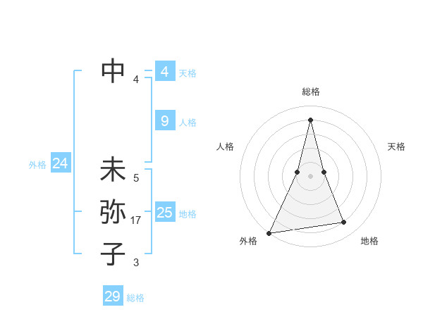 中 未弥子さんの総格は29画の4点!