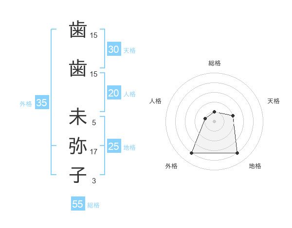 歯歯 未弥子さんの外格は35画の4点!