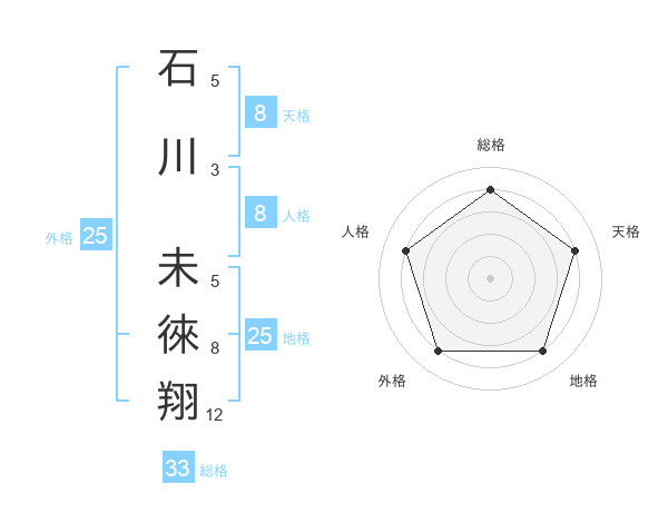 石川 未徠翔さんの外格は25画の4点