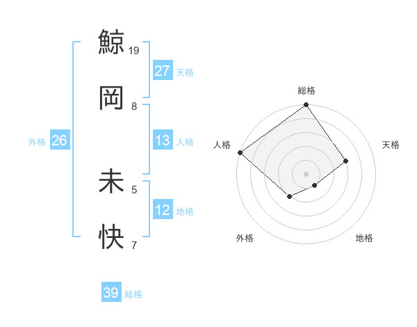 鯨岡 未快さんの総格は39画の5点!