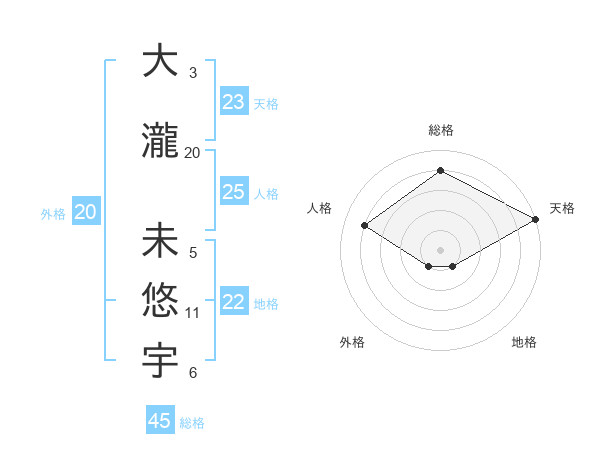 大瀧 未悠宇さんを姓名の画数から五運を鑑定