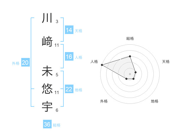 川﨑 未悠宇さんを姓名の画数から五運を鑑定