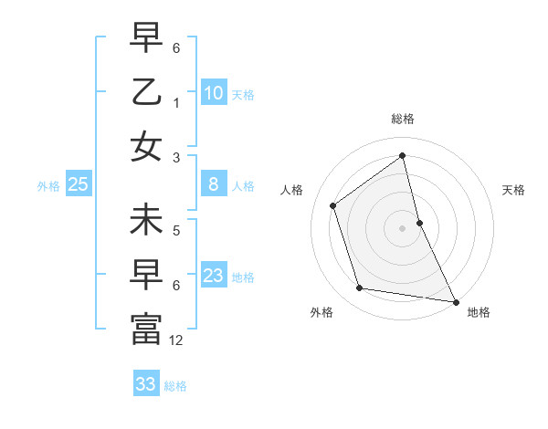 早乙女 未早富さんを姓名の画数から五運を鑑定