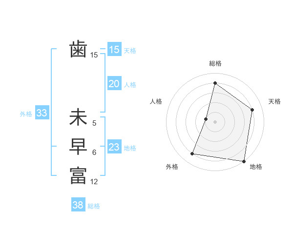 歯 未早富さんの総格は38画の4点!