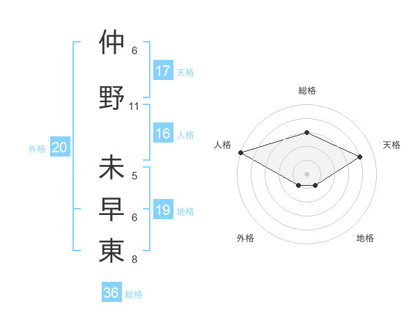 仲野 未早東さんの天格は17画の4点!