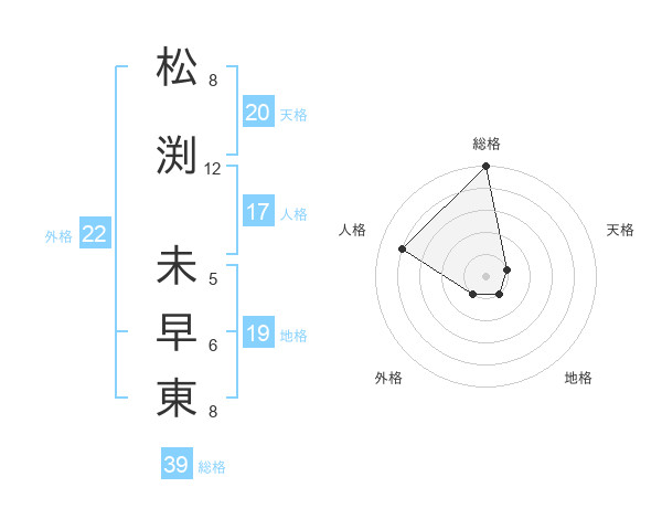 松渕 未早東さんを姓名の画数から五運を鑑定