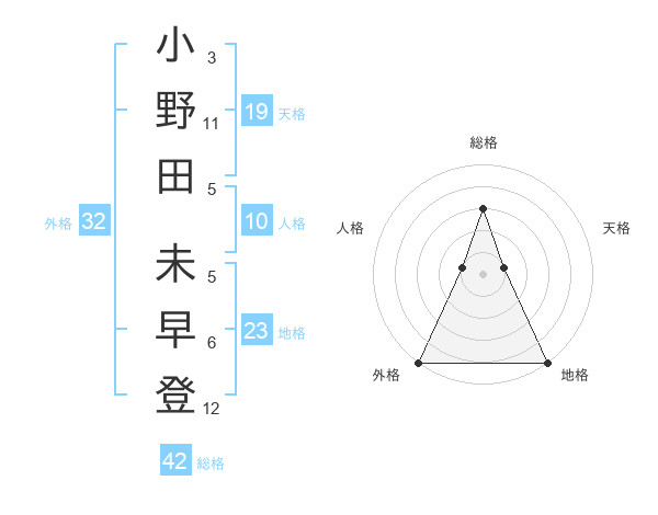 小野田 未早登さんを姓名の画数から五運を鑑定