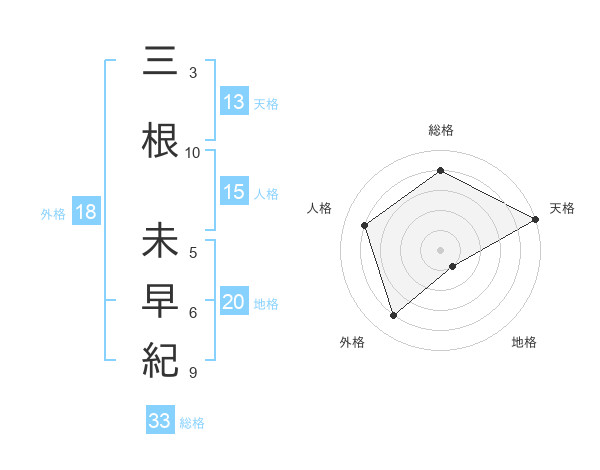 三根 未早紀さんを姓名の画数から五運を鑑定