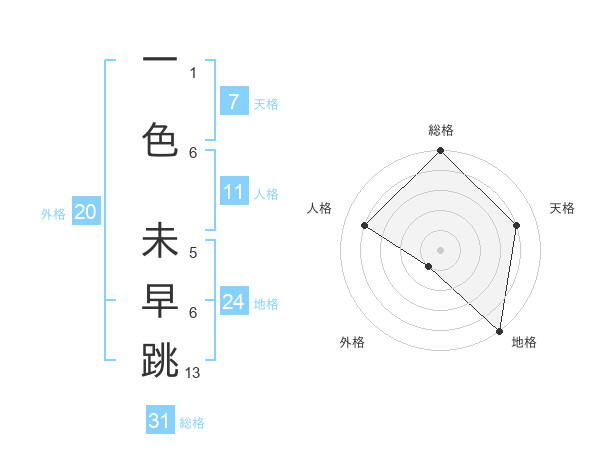 一色 未早跳さんを姓名の画数から五運を鑑定