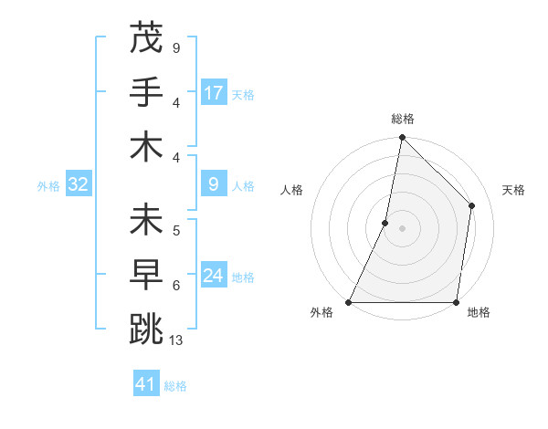 茂手木 未早跳さんを姓名の画数から五運を鑑定