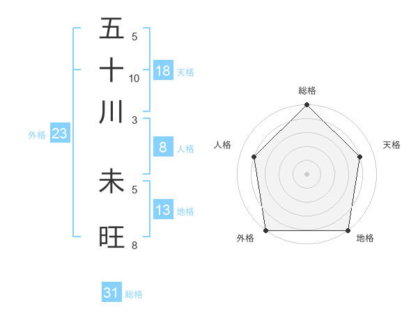 五十川 未旺さんを姓名の画数から五運を鑑定